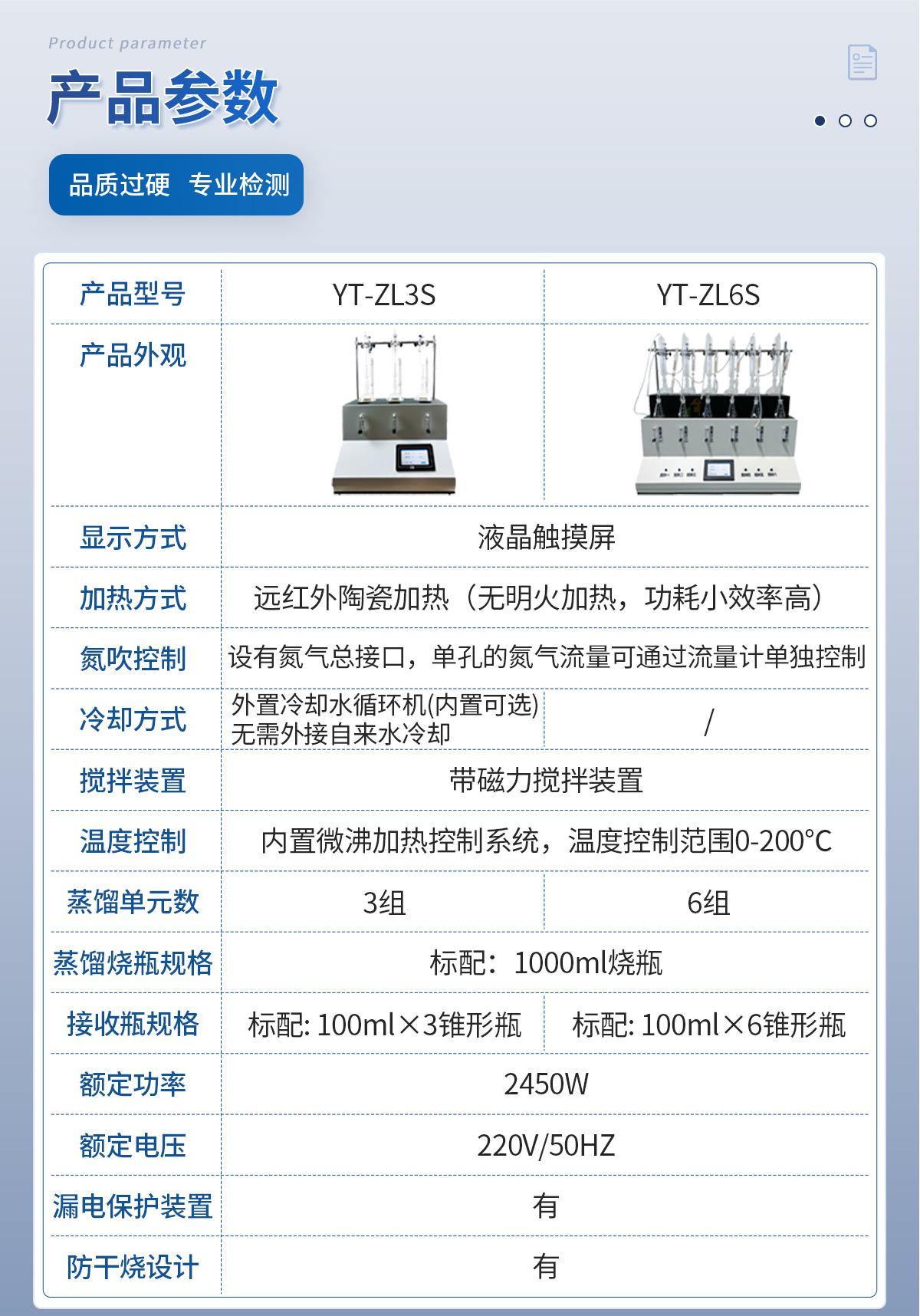 主要原理是根據(jù)藥典中所提供的檢測(cè)方法,將中藥材以蒸餾法進(jìn)行處理,樣品中的亞硫酸鹽系列物質(zhì)加酸處理后轉(zhuǎn)化為二氧化硫后,隨氮?dú)饬鲙氲胶须p氧水的吸收瓶中,雙氧水將其氧化為硫酸根離子,采用酸堿滴定法測(cè)定,計(jì)算藥材及飲片中的二氧化硫殘留量。本產(chǎn)品在嚴(yán)格遵循藥典要求的基礎(chǔ)上,整合加熱,蒸餾,水循環(huán)及氮吹等功能為一體,可同時(shí)提供3-5個(gè)樣品(空白樣,平行樣)的處理,從而極大的提高了檢測(cè)數(shù)據(jù)的精度和減少了工作時(shí)間。