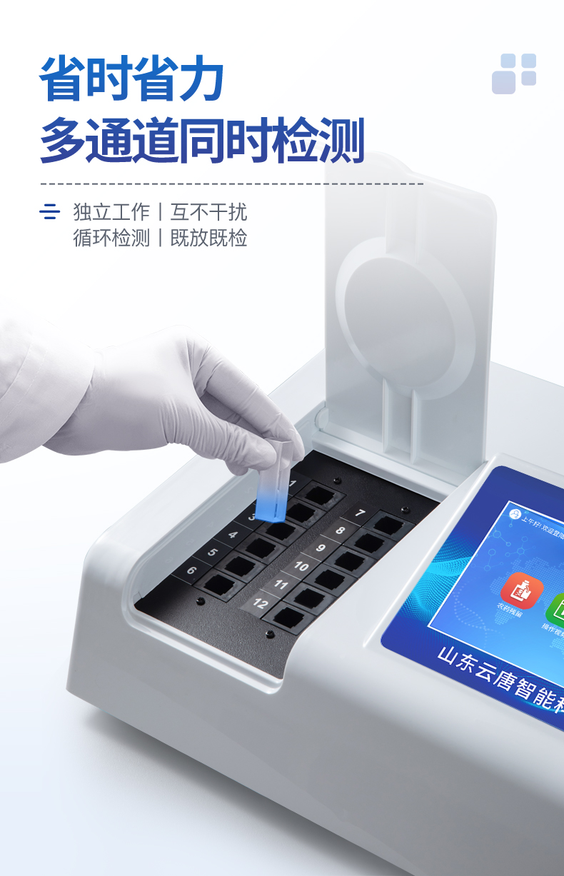 6、檢測(cè)通道:8個(gè)檢測(cè)通道,可以同時(shí)測(cè)試多個(gè)樣品,循環(huán)檢測(cè),即放即檢,每個(gè)樣品由程序控制分別獨(dú)立工作,不會(huì)互相干擾。