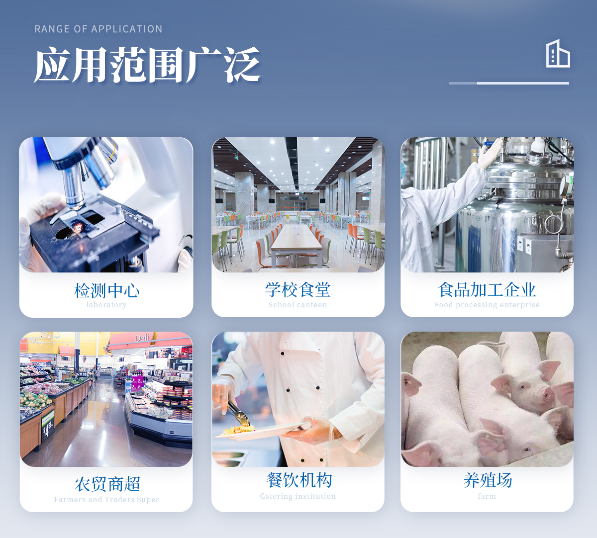 全自動(dòng)農(nóng)獸藥殘留檢測(cè)儀可對(duì)各種蔬菜水果中有機(jī)磷和氨基甲酸酯類農(nóng)藥殘留;各種肉類水產(chǎn)食品中瘦肉精激素類殘留,抗生素殘留,獸藥殘留,水產(chǎn)品藥物殘留等百余種項(xiàng)目進(jìn)行快速檢測(cè)。該設(shè)備廣泛應(yīng)用于蔬菜批發(fā)市場(chǎng)、超市、商場(chǎng)、食藥監(jiān)等部門的蔬菜和水果中的農(nóng)藥殘留檢測(cè)。
