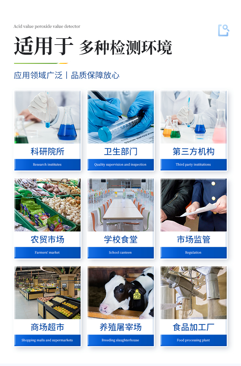 該高精度食品安全檢測儀為集成化食品安全快速檢測分析設(shè)備,廣泛應(yīng)用于食藥監(jiān)局、衛(wèi)生部門、高教院校、科研院所、農(nóng)業(yè)部門、養(yǎng)殖場、屠宰場、食品肉產(chǎn)品深加工企業(yè)、檢驗(yàn)檢疫部門等單位使用。