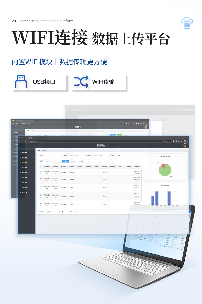 8.3、數(shù)據(jù)監(jiān)管系統(tǒng):同步對接監(jiān)管平臺(tái),數(shù)據(jù)可局域網(wǎng)和互聯(lián)網(wǎng)數(shù)據(jù)上傳,檢測結(jié)果可選擇直接傳至食品安全監(jiān)管平臺(tái)。進(jìn)行區(qū)域食品安全監(jiān)管及大數(shù)據(jù)分析處理與數(shù)據(jù)統(tǒng)計(jì),檢測區(qū)域食品安全長短期動(dòng)態(tài),達(dá)到食品安全問題預(yù)估、預(yù)警。