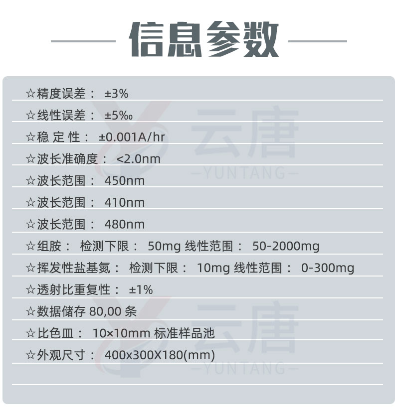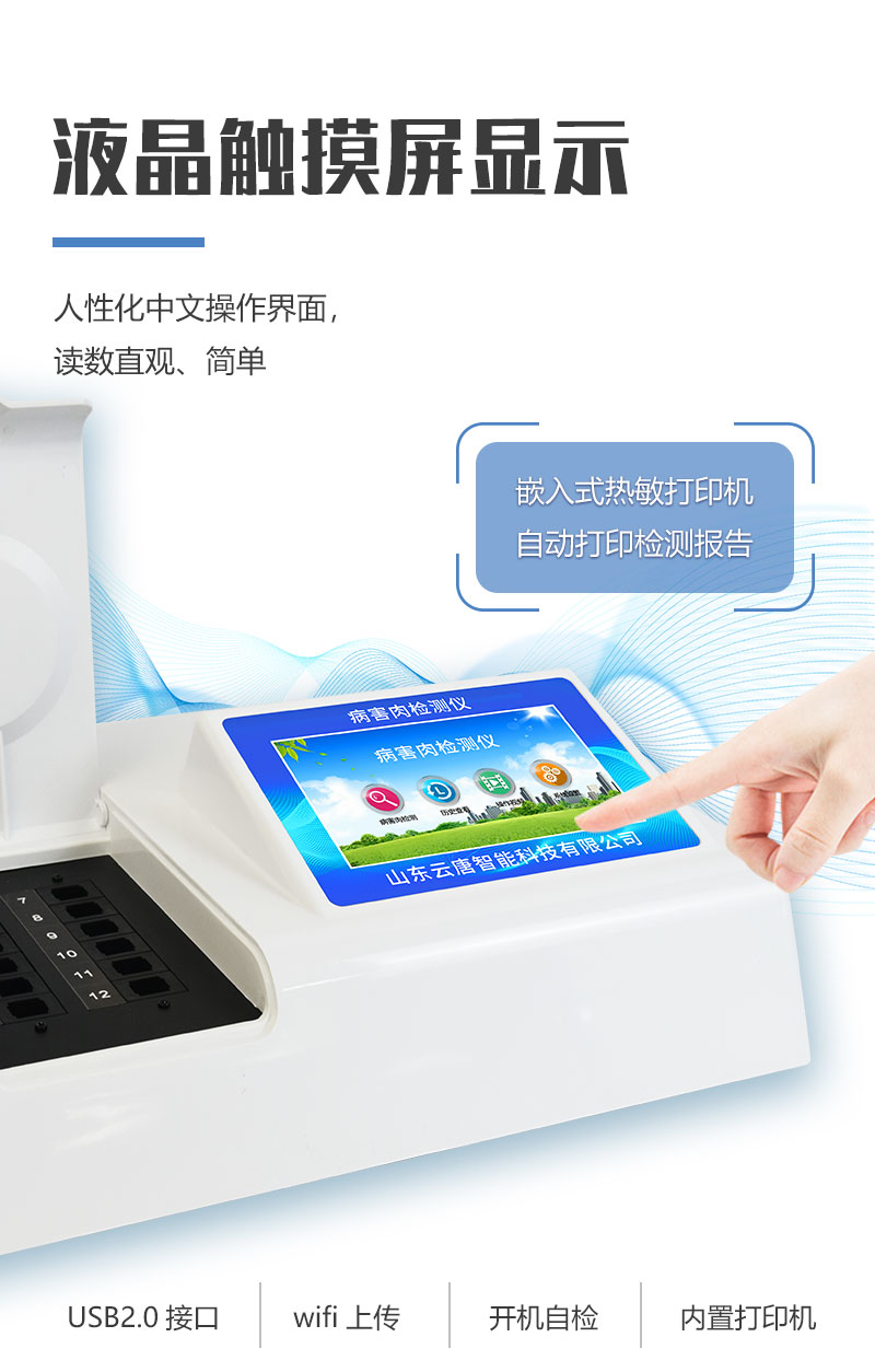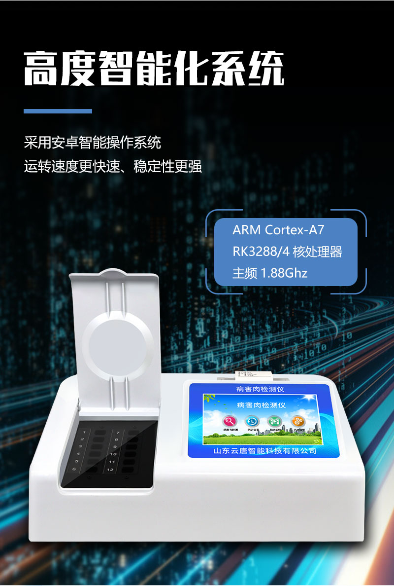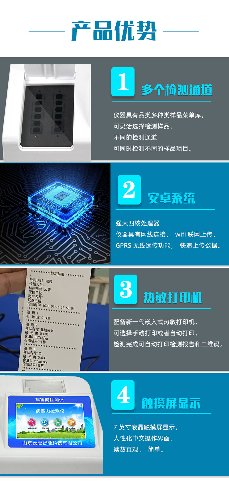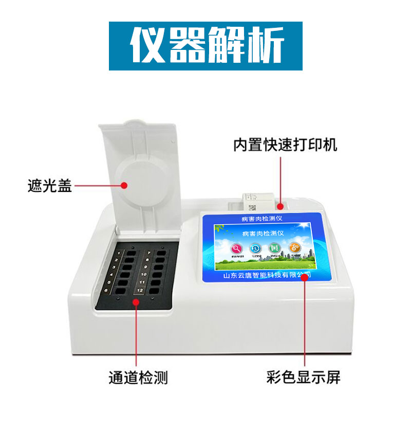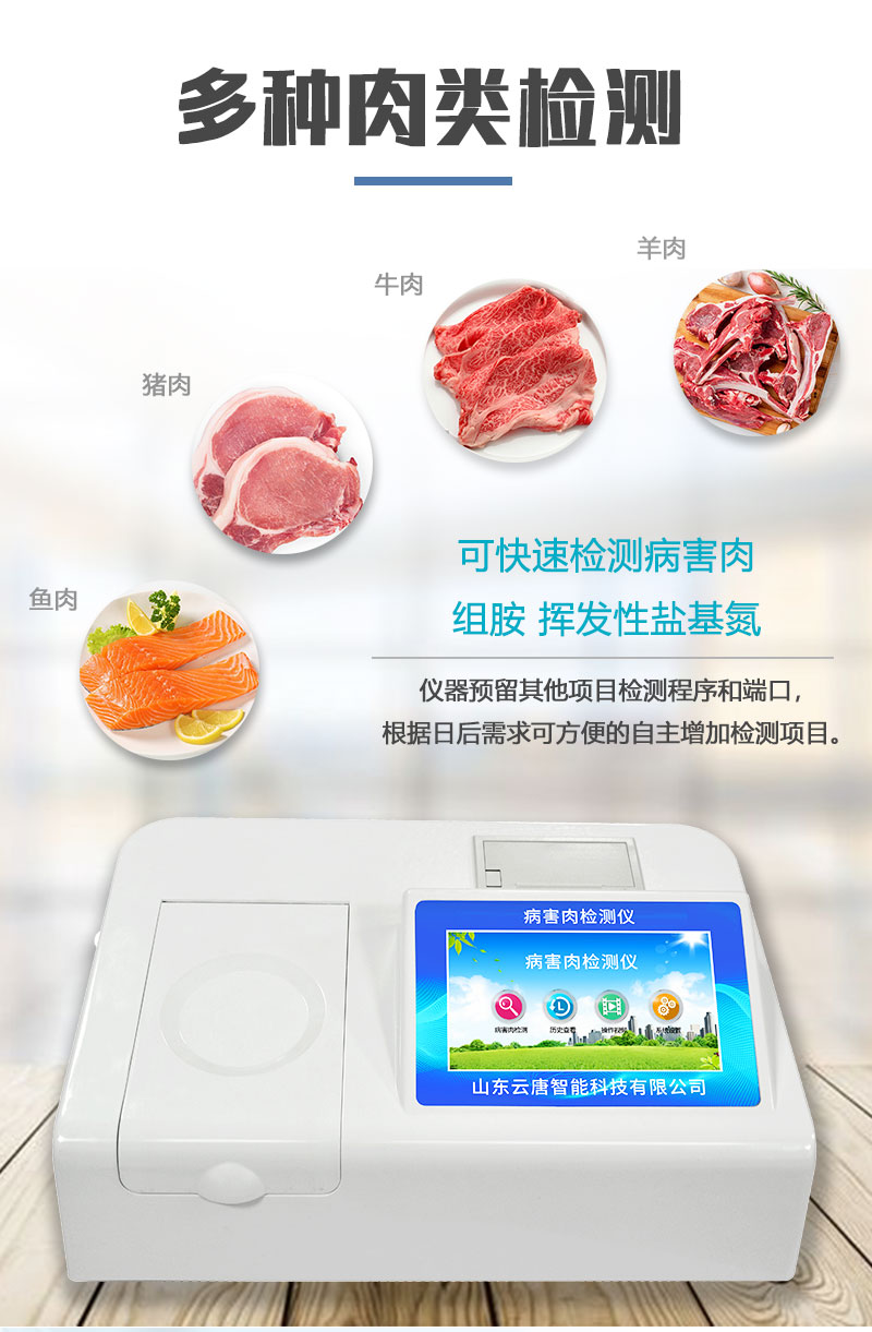 可快速檢測病害肉、組胺、揮發(fā)性鹽基氮,儀器預(yù)留其他項目檢測程序和端口,根據(jù)日后需求可方便的自主增加檢測項目。