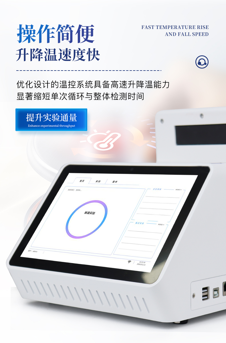 | 1.智能操作系統(tǒng),實驗盡在掌握 | A程序更新與預(yù)設(shè):支持在線更新實驗程序,并內(nèi)置豐富的預(yù)設(shè)實驗程序模板,用戶亦可自定義保存常用模版,實現(xiàn)一鍵快速啟動,極大提升操作效率。 | B極簡啟動體驗(可選配):可定制集成攝像頭掃描系統(tǒng),用戶只需掃描樣品板或程序卡的二維碼,即可自動識別并調(diào)用對應(yīng)實驗程序,簡化流程,避免人為設(shè)置錯誤。 | C操作簡單:觸摸屏界面設(shè)計得直觀易懂,新用戶也能快速上手。預(yù)置常用程序模板,進(jìn)一步簡化操作流程。 | 2.精準(zhǔn)穩(wěn)定的溫控與光學(xué)核心 | A長久精準(zhǔn)的溫控系統(tǒng):采用進(jìn)口***TEC半導(dǎo)體制冷模塊,控溫精準(zhǔn)(±0.1°C),孔間溫度均勻性**(≤±0.3°C)。系統(tǒng)穩(wěn)定性卓越,長期使用性能衰減小,校準(zhǔn)周期長達(dá)數(shù)年,顯著降低維護(hù)成本與運(yùn)營中斷。 | B免維護(hù)的靈敏光學(xué)系統(tǒng):配備2個獨(dú)立LED光源與2個獨(dú)立光電二極管檢測器,實現(xiàn)雙通道熒光同步精準(zhǔn)檢測。采用超長壽命進(jìn)口光源,設(shè)計壽命期內(nèi)免維護(hù),無需額外校準(zhǔn)或更換,保障檢測結(jié)果長期一致性與高靈敏度。 | C卓越的數(shù)據(jù)質(zhì)量:實驗線性相關(guān)性高(R2≥0.999),重復(fù)性優(yōu)異(孔間CV值低),確保定量結(jié)果準(zhǔn)確可靠,數(shù)據(jù)置信度高。 | 3.**便捷的數(shù)據(jù)與輸出管理 | A多重數(shù)據(jù)導(dǎo)出方式:支持通過USB存儲設(shè)備直接拷貝,或經(jīng)由Wi-Fi無線網(wǎng)絡(luò)傳輸數(shù)據(jù)至本地服務(wù)器或云端,方便靈活,滿足各類實驗室數(shù)據(jù)管理習(xí)慣。(可選配) | B豐富的報告導(dǎo)出與打印:支持生成并導(dǎo)出多種格式(如PDF、Excel)的實驗報告。儀器兼容USB熱敏打印機(jī)、藍(lán)牙無線打印機(jī)及常規(guī)A4打印機(jī),可直接在儀器上或通過電腦一鍵導(dǎo)出并打印專業(yè)報告,便于結(jié)果存檔與即時分享。 | 4.快速**與堅固耐用 | A升降溫速度快:優(yōu)化設(shè)計的溫控系統(tǒng)具備高速升降溫能力,顯著縮短單次循環(huán)與整體檢測時間,提升實驗通量。 | B超長使用壽命:核心部件均選用工業(yè)級耐用材料與設(shè)計,整機(jī)運(yùn)行穩(wěn)定可靠,致力于為用戶提供長久的投資回報。 |